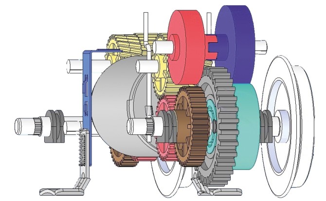 Die Abbildung unten verdeutlicht die aufwendige Umsetzung des Zahnradantriebes.