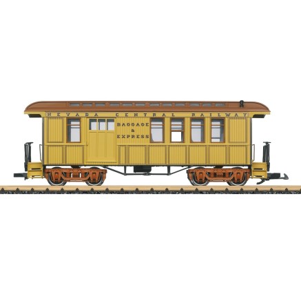 Der Halbgepäckwagen der Nevada Central Railroad, wie er in ähnlicher Form noch heute im Museum in Sacramento zu finden ist.
