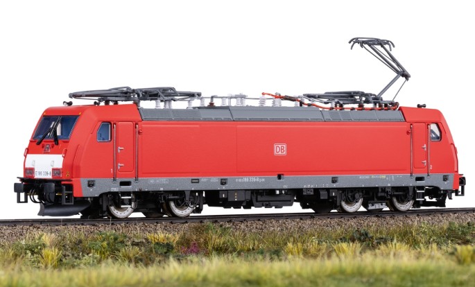 Nachdem die 186er bisher im Märklin Programm nur als einfacheres Start-Up vorhanden war, kommt nun ein zeitgemäßes und hochdetailliertes Modell ins Programm. Sowohl die Ausstattung unter der Lok, als auch auf dem Dach der Lok entspricht exakt dem jeweiligen Vorbild. Die jeweils unterschiedlichen Pantografen (Länderversionen) wurden entwickelt und sind äußerst fein ausgeführt. Die Seitenwände sind den Vorbild entsprechend teilweise profiliert und weisen alle Öffnungen und Armaturen dieser Generation der 186er auf. Drehgestelle und Radscheiben sind filigran detailliert. Viele separat angesetzte Teile wie Griffstangen, Sandkästen, Scheibenwischer, UIC-Steckdosen und alle Dachleitungen geben dem Modell einen hochwertigen Charakter. Die funktionale Ausstattung lässt ebenfalls keine Wünsche offen. Neben den originalen Geräuschfunktionen besitzen die unterschiedlichen Modelle dem Vorbild angepasste Lichtfunktionen. So sind z.B. die jeweiligen Lichtbilder der Einsatzländer nachstellbar. Der Führerstand und das Fahrpult können separat beleuchtet werden. Um kurze Stromlose Stellen auf der Anlage zu kompensieren besitzt das Modell einen einstellbaren Pufferkondensator. So kann das Modell per CV-Mapping exakt auf die elektronischen Gegebenheiten auf der Anlage konfiguriert werden. Die ersten Modelle sind 186 339-8 der DB AG, die 186 181-4 der HSL und die 186 310-9 der Euro Cargo Rail (EWS).