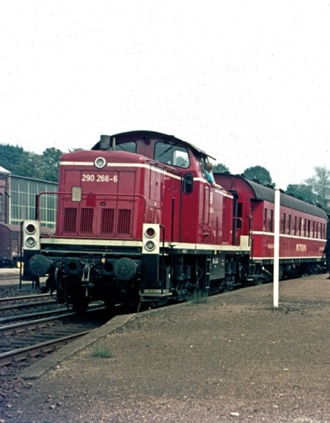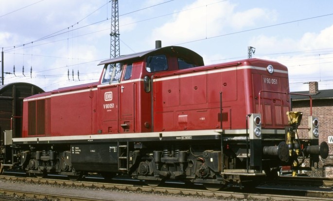 Die fast neue V90 051 steht 1968 im Rangierbahnhof in Hamburg-Wilhelmsburg. Copyright: Will A. Reed/ Slg. Eisenbahnstiftung