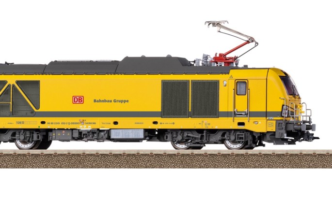Das Modell des Dual-Mode Vectron Siemens bildet die neueste Anschaffung in Sachen Lokomotiven der DB Bahnbau Gruppe nach.